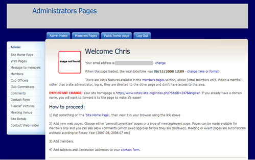 Click on the ‘Site Home Page’ link at the top of the menu. The editor page opens. Type some text into the box, then click ‘update’ at the bottom of the form.